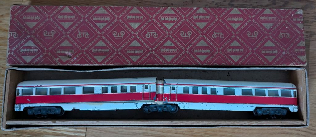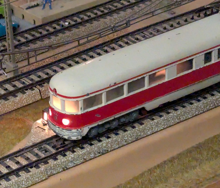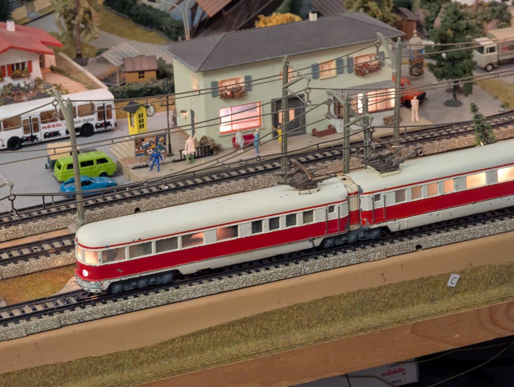 Anfang 2026 habe ich auf einer Modellbahnbörse ein vergleichsweise seltenes Märklin-Fahrzeug gefunden. Einen DT 800 aus den frühen 1950er Jahren. Hierbei handelt es sich um ein fiktives Modell eines europäischen Schnelltriebwagens, wie er seit den 1930er Jahren im Einsatz steht. Stilistische Anlehnungen an Reichsbahnbauarten sind erkennbar.